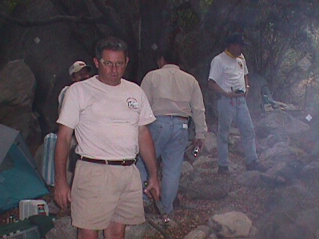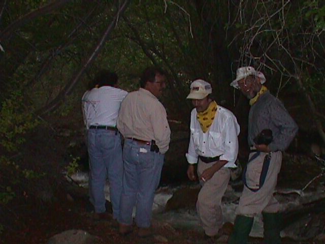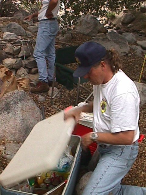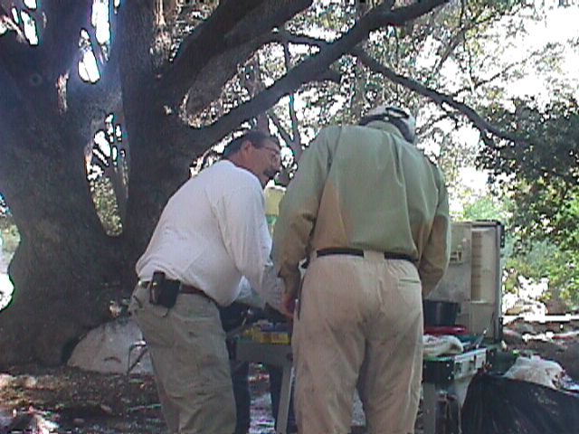 ![]() Here, Tony & Tom discuss the application of the culinary arts to outdoor cooking. I had to keep my distance from them, because I had forgotten to take my hip waders with me. |