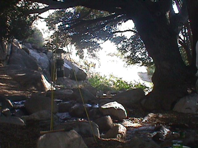 ![]() Here's another view of the Sierra's from just above our campsite. Mt. Whitney's in there somewhere. There's a fair amount of water coming into the campsite, presumably year 'round |