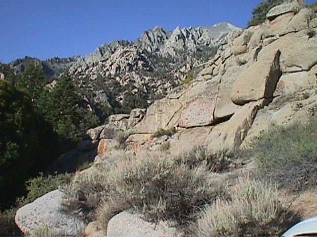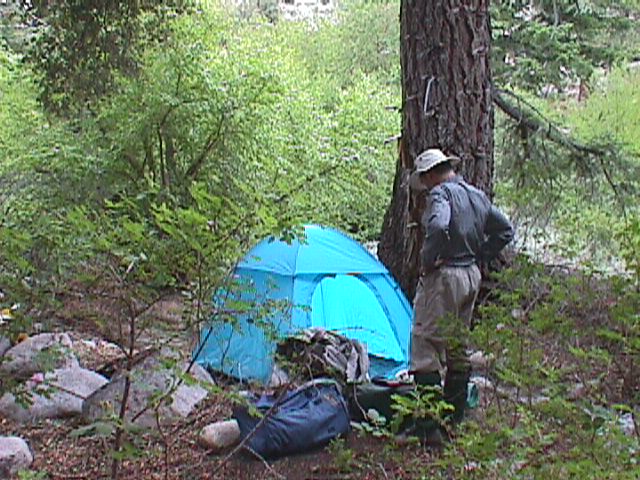 ![]() This is the view as we arrived. You're looking up toward Mt. Whitney which, as everyone knows, is the highest mountain in the continental United States. We used to get higher than Whitney without even climbing a lick, but those days are long gone (whew!). |